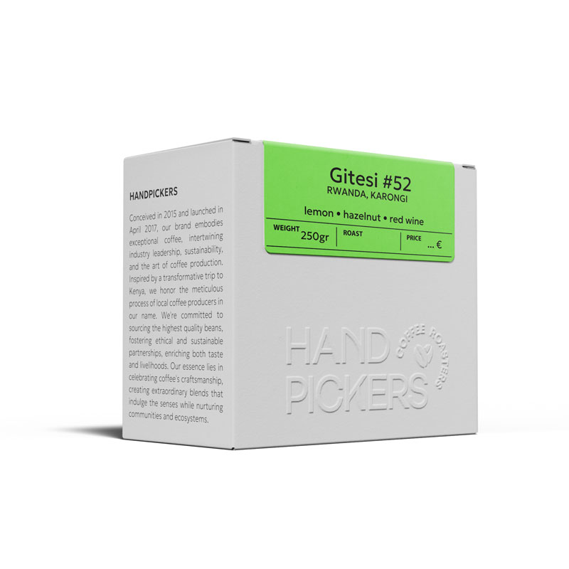 Gitesi Imbuto #52 comes from the Gitesi washing station in Karongi, Western Rwanda, a place with exceptional terroir and high altitude conditions. It is a Red Bourbon variety, washed processed, delivering clarity, fruitiness and balance. Perfect for an espresso with character and fruity complexity.