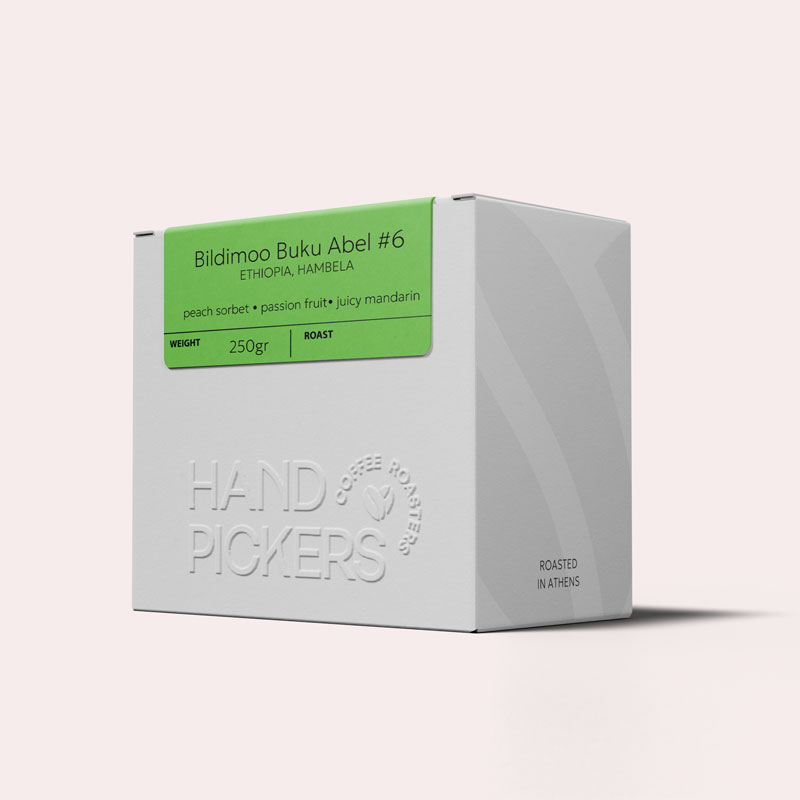 Η Buku Abel είναι ένας σταθμός επεξεργασίας στην περιοχή Hambela, Guji, που ιδρύθηκε το 2019. Βρίσκεται στα 1900–2100μ, σε λόφο με πλούσια κόκκινα εδάφη και ιδανική ηλιοφάνεια. Περίπου 500 μικροκαλλιεργητές παραδίδουν τα κεράσια τους καθημερινά, τα οποία καλλιεργούνται σε μικρά κτήματα 0.5–2 εκταρίων με πυκνή φύτευση και παραδοσιακές πρακτικές.Η επεξεργασία γίνεται με την παραδοσιακή αιθιοπική washed μέθοδο: τα κεράσια αποπολπίζονται, ζυμώνονται σε νερό, πλένονται και ξηραίνονται σε υπερυψωμένα κρεβάτια. Αυτή η μέθοδος προσφέρει καθαρότητα, φωτεινή οξύτητα και πολυεπίπεδο αρωματικό προφίλ που χαρακτηρίζει τους κορυφαίους Guji καφέδες.Ως Handpickers, επιλέξαμε αυτό τον καφέ για τον εκρηκτικό του χαρακτήρα και την εκλεπτυσμένη φρουτώδη δομή του. Θέλουμε να αναδείξουμε τη δουλειά των παραγωγών της Hambela και να προσφέρουμε στους λάτρεις του espresso μια εμπειρία φωτεινής, κομψής και εξαιρετικά καθαρής Αιθιοπίας.