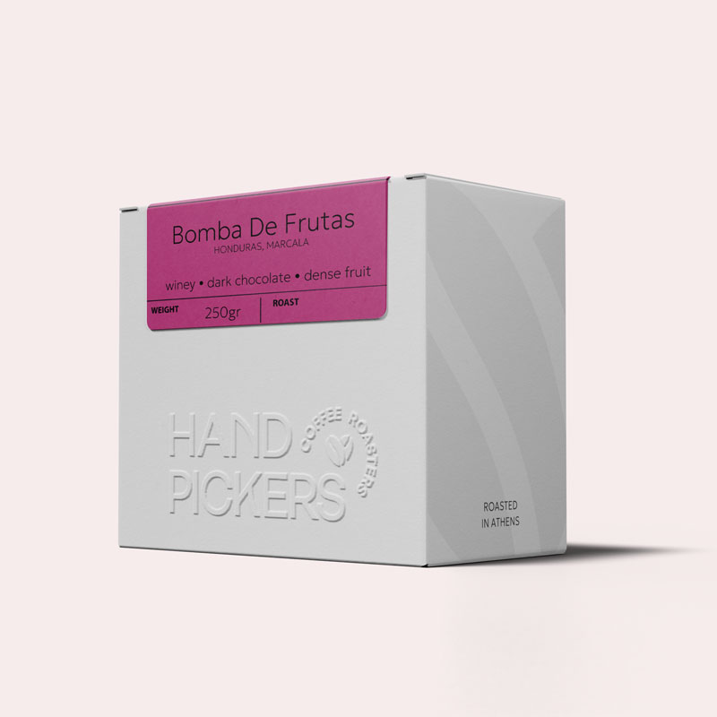 Ο Caballero Bomba de Fruta παράγεται από τους Marysabel Caballero & Moises Herrera, μερικούς από τους πιο σημαντικούς παραγωγούς της Ονδούρας. Καλλιεργούν ποιοτικό καφέ σε 17 φάρμες στην περιοχή Marcala, με βασική ποικιλία την Catuai. Η επιμονή τους στην ποιότητα, τους έχει καταξιώσει σε διεθνές επίπεδο, με διακρίσεις στην Cup of Excellence και στον διαγωνισμό Coffee of the Year.Η επεξεργασία γίνεται με φυσική μέθοδο: τα ώριμα κεράσια συλλέγονται με το χέρι και ξηραίνονται ολόκληρα στον ήλιο, αναδεικνύοντας έντονα φρουτώδη και γλυκά χαρακτηριστικά. Η φροντίδα στη διαλογή και στην ξήρανση εγγυάται σταθερή και καθαρή γεύση στο φλιτζάνι.Επιλέξαμε αυτό τον καφέ για τη μοναδική του ένταση και το πλούσιο αρωματικό του προφίλ. Θέλουμε να αναδείξουμε τη βαθιά φροντίδα που προσφέρει το ζευγάρι Caballero στην καλλιέργεια και επεξεργασία, και να προσφέρουμε στους πελάτες μας έναν espresso που εντυπωσιάζει με την πρώτη γουλιά.