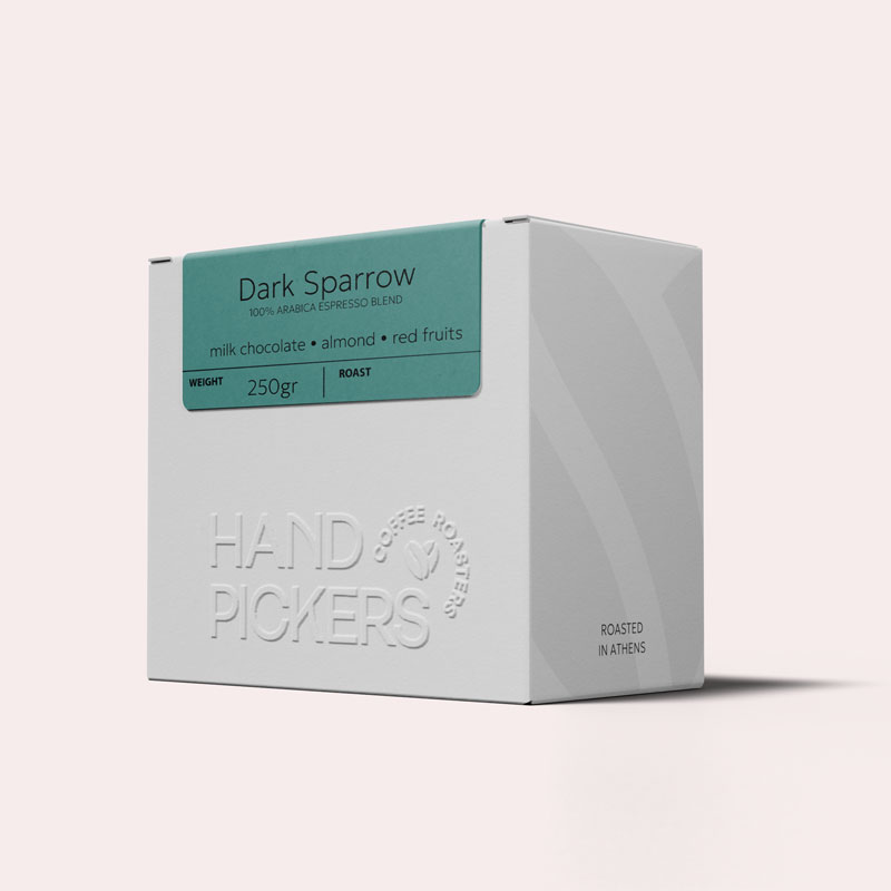 Ο Dark Sparrow είναι η έκφραση του σύγχρονου espresso όπως τον ονειρευόμαστε στη Handpickers: ισορροπημένος, σοκολατένιος και πολυδιάστατος. Με αναλογία 55% Βραζιλία, 25% Κολομβία και 20% Το Dark Sparrow γίνεται πιο εκλεκτό από ποτέ. Με 55% από Βραζιλία (Manteigueira Red Catuai, natural), 25% από Κολομβία (Huila Caturra, washed) και 20% από Αιθιοπία (Bildiimoo Chelbesa Danche, natural), αυτό το blend ισορροπεί γλυκύτητα, φρούτο και βάθος. Καβουρδισμένο στο Lighttell 65 για espresso. Ένα blend σχεδιασμένο για όσους εκτιμούν την πολυπλοκότητα και την ισορροπία σε κάθε γουλιά.