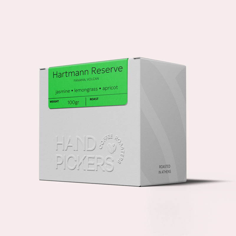 Η οικογένεια Hartmann αποτελεί έναν από τους πιο εμβληματικούς παραγωγούς του Παναμά, με ιστορία που ξεκινά από το 1940. Στην περιοχή Santa Clara, σε υψόμετρα 1.800–2.050 μ., καλλιεργούν την Geisha σε ένα περιβάλλον ιδανικό για την ανάπτυξή της — σκιασμένες φυτείες, πλούσιο ηφαιστειακό έδαφος και σταθερό μικροκλίμα.Η πλυμένη επεξεργασία πραγματοποιείται με εξαιρετική φροντίδα: τα ώριμα κεράσια αποπολπίζονται την ίδια μέρα, ζυμώνονται σε δεξαμενές για 48–72 ώρες και πλένονται με καθαρό νερό πριν στεγνώσουν σε υπερυψωμένα κρεβάτια. Η διαδικασία αυτή αναδεικνύει την καθαρότητα, τη λουλουδένια πολυπλοκότητα και τη λαμπερή οξύτητα που χαρακτηρίζει τις Geisha της Hartmann.Επιλέξαμε αυτό τον καφέ για να εκφράσουμε την κομψότητα και την ακρίβεια που μπορεί να προσφέρει η Geisha όταν καλλιεργείται και επεξεργάζεται με πάθος. Στην Handpickers, μας ενέπνευσε η προσήλωση της οικογένειας Hartmann στην ποιότητα και το πώς κάθε φλιτζάνι αποτυπώνει τη δική τους ιστορία τεσσάρων γενεών. Είναι ένας καφές που προκαλεί δέος.