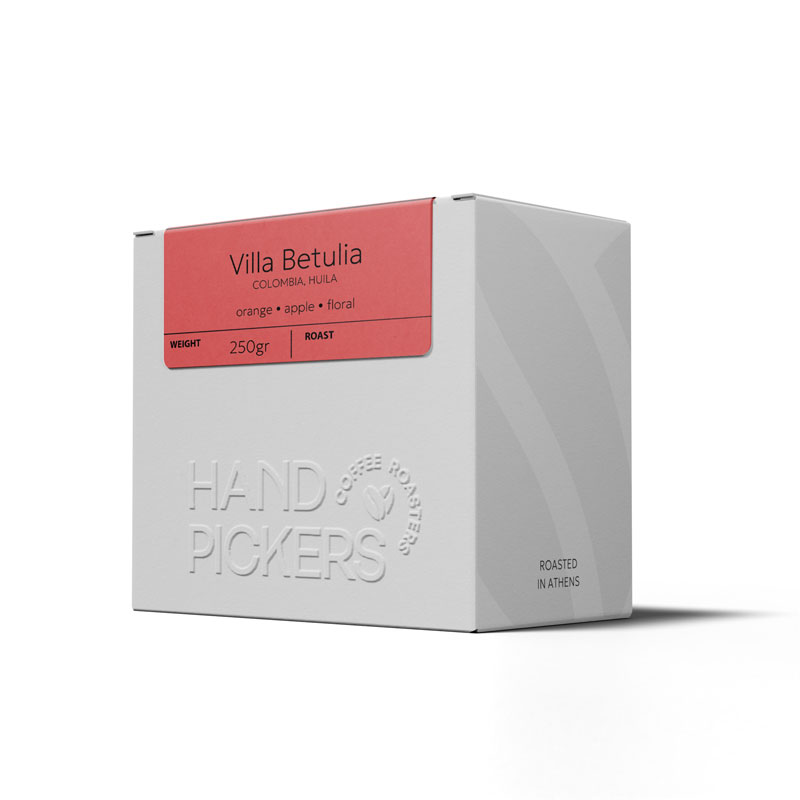 Στην περιοχή Acevedo, Huila, ο Luis Aníbal Calderón αποτελεί μια θρυλική μορφή της εξειδικευμένης καλλιέργειας καφέ. Μετά από δεκαετίες αφοσίωσης, ο Luis ανακάλυψε και ανέδειξε την ποικιλία Ombligón: έναν καρπό με χαρακτηριστικό «ομφαλό» και γευστικό εύρος που θυμίζει την κληρονομιά των Ethiopian Heirlooms. Από το 2015, έχει μετατρέψει τη Finca Villa Betulia σε κέντρο σπάνιων ποικιλιών, προστατεύοντας την καφεαλυσίδα με εντυπωσιακή βιοποικιλότητα. Ο Ombligón συλλέγεται αποκλειστικά στο απόλυτο στάδιο ωρίμανσης. Ακολουθεί χειρωνακτική διαλογή, επίπλευση και στη συνέχεια 30ωρη ζύμωση υπό νερό σύμφωνα με το αυστηρό πρωτόκολλο Cofinet. Μετά την αποπολποποίηση και το σχολαστικό πλύσιμο, ο καφές ξηραίνεται σε παραβολικούς ξηραντήρες για 8–15 ημέρες, με συνεχή παρακολούθηση μέχρι να φτάσει στο ιδανικό επίπεδο υγρασίας 9.5–11%. Στην Handpickers επιλέξαμε τον Ombligón γιατί αντιπροσωπεύει το μέλλον της εξειδικευμένης καφεκομίας: ποικιλιακή μοναδικότητα, βαθιά γνώση του παραγωγού και επεξεργασία με απόλυτη ακρίβεια. Θέλουμε να μοιραστούμε με τους πελάτες μας μια εμπειρία που γεννιέται από δεκαετίες αφοσίωσης και πειραματισμού· μια κούπα που τιμά τη βιοποικιλότητα και την ανθρώπινη επιμονή.