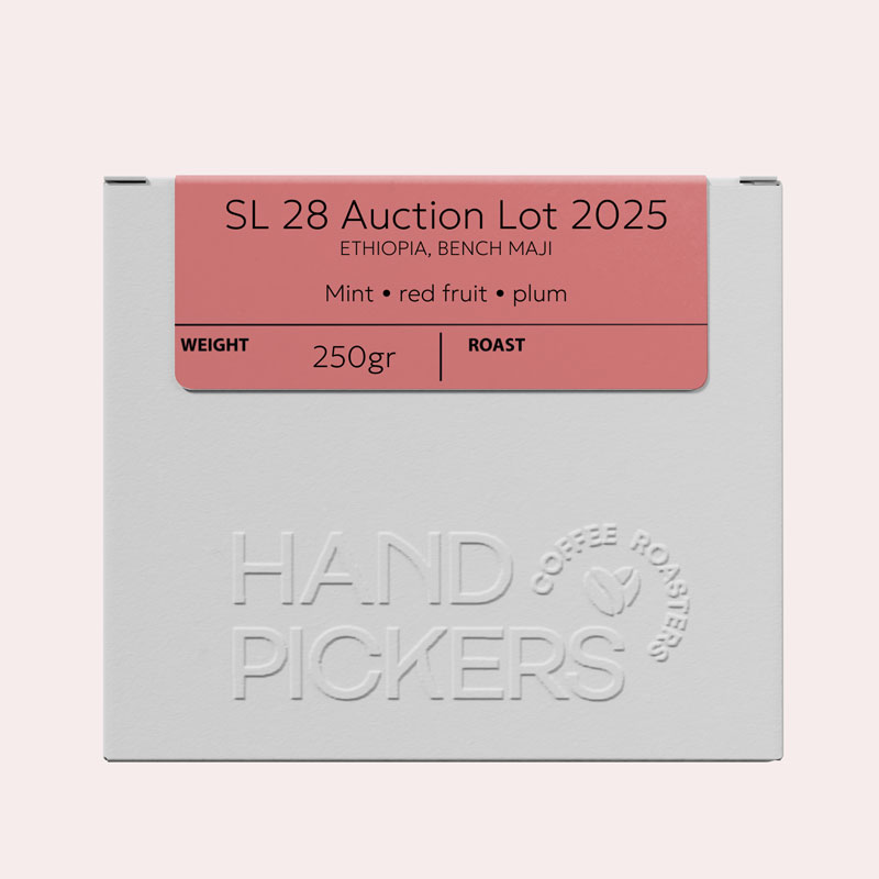 Η ποικιλία SL28, γνωστή για το βαθύ γευστικό της προφίλ και τη χαρακτηριστική οξύτητα, καλλιεργήθηκε στη φάρμα Gesha Village, στις παρυφές του Illubabor Forest, σε υψόμετρο που φτάνει τα 2.000 μέτρα. Το 2025, αυτή η παρτίδα επιλέχθηκε για τη δημοπρασία Champions Reserve, ανάμεσα στις καλύτερες της χρονιάς, χάρη στην εξαιρετική ισορροπία και πολυπλοκότητά της. Η επεξεργασία natural πραγματοποιείται σε ειδικά σχεδιασμένα υπερυψωμένα κρεβάτια με φίλτρα UV. Τα φρέσκα κεράσια στεγνώνουν για τουλάχιστον 26 ημέρες, επιτρέποντας στα σάκχαρα να ενσωματωθούν πλήρως στον κόκκο, δημιουργώντας νότες κόκκινου φρούτου, πράσινου μήλου και γλυκού δαμάσκηνου, με νύξεις τσαγιού και μέντας. Στη Handpickers, επιλέξαμε αυτόν τον καφέ γιατί αντιπροσωπεύει το σημείο που η τέχνη συναντά την τελειότητα. Ένας καφές που μας θυμίζει γιατί αγαπήσαμε αυτή τη δουλειά — γιατί η αφοσίωση, το πάθος και η υπομονή μπορούν να γίνουν γεύση, άρωμα και συγκίνηση στο φλιτζάνι.